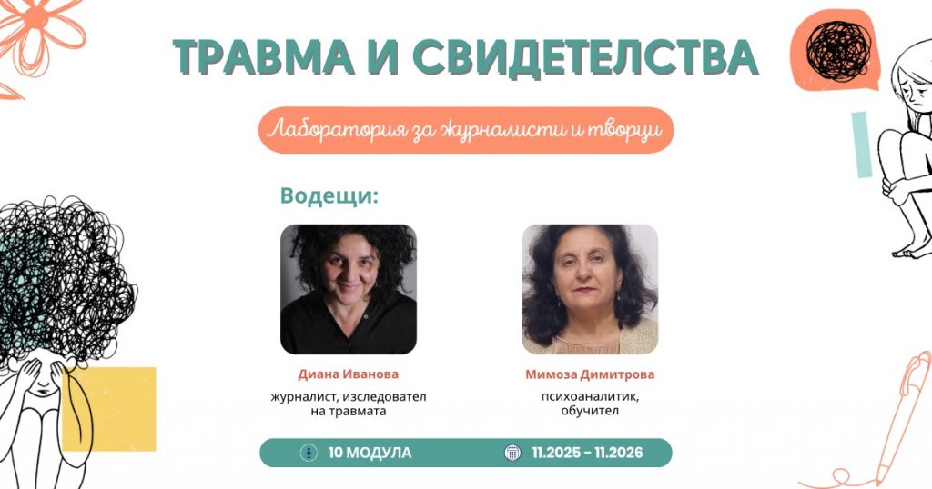 Лабораторията ТРАВМА И СВИДЕТЕЛСТВА е защитено място за споделяне, изследване и същевременно място за овладяване и развитие на умения и техники, които да подкрепят не само справянето от страна на личността, но и социалната ефективност от действията и създаването на общности.